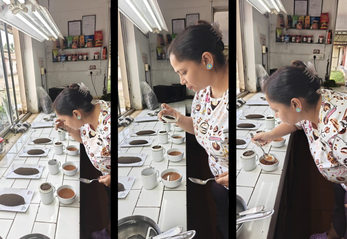At the end of the factory visit, I cupped the teas in the lab. Cupping is, hands down, my favorite part of visiting a tea factory. Sensory evaluation and sensory science always fascinate me. As I had mentioned in the last newsletter, where I shared about the Tea Color Wheel, I had learned sensory evaluation and organoleptic testing in great detail when I was pursuing my graduate studies in dairy technology. After that, I got into wine and spirit tasting, then I got into coffee cupping, then some tea cupping, cacao tasting, I even led through a honey tasting spread, and more. I have delivered sensory masterclasses for diverse audiences, even in Kazakhstan!